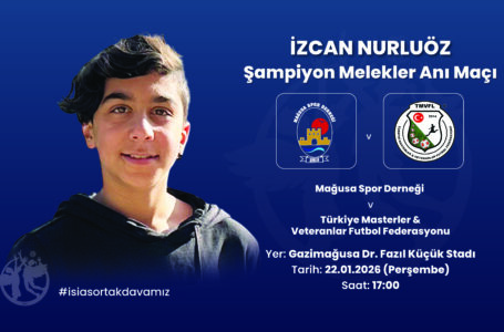 İzcan Nurluöz Şampiyon Melekler Anı Maçı Gazimağusa’da Oynanacak 6 Şubat 2023 depreminde kaybettiğimiz Şampiyon Meleklerimizi anmak ve adalet mücadelesini yaşatmak amacıyla düzenlenen “İzcan Nurluöz Şampiyon Melekler Anı Maçı”, 22 Ocak Perşembe günü Gazimağusa’da oynanacaktır. Mağusa…