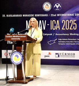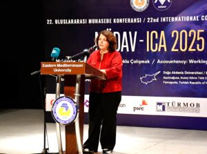 Doğu Akdeniz Üniversitesi (DAÜ) ev sahipliğinde ve Muhasebe Öğretim Üyeleri Bilim ve Dayanışma Vakfı (MÖDAV) iş birliğinde düzenlenen 22. Uluslararası Muhasebe Konferansı’nın açılışı (MÖDAV-ICA 2025), 9 Eylül 2025 Salı günü, saat 10.00’da, Rauf Raif Denktaş Kültür ve Kongre Sarayı’nda gerçekleştirildi. “Muhasebe: Gelecek İçin Sorumlulukla Çalışmak” temasıyla düzenlenen konferans hem çevrim içi hem de yüz yüze katılım imkânı ile alanında uzman akademisyenleri, araştırmacıları ve sektör temsilcilerini bir araya getirdi. Söz konusu konferansa Amerika Birleşik Devletleri, İran, Nijerya, Gana, İtalya ve Türkiye başta olmak üzere birçok ülkeden 200’ü aşkın kişi katıldı.