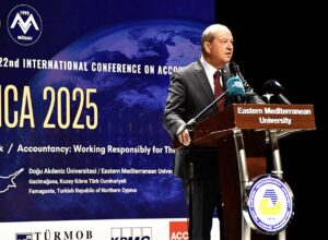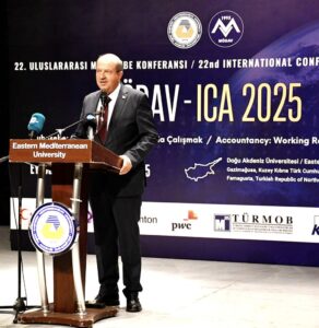 Cumhurbaşkanı Ersin Tatar ise muhasebe ve ekonomi alanındaki değerlendirmelerine değinerek, mesleğin geçmişi, önemi ve gelecekteki dönüşümünü vurguladı. Cumhurbaşkanı Tatar, DAÜ’nün yetiştirdiği mezunların marka değerine dikkat çekerek, DAÜ’nün eğitim kalitesi, ulusal ve uluslararası başarıları ile ekonomiye katkısı üzerinde durdu. Cumhurbaşkanı Tatar, teknolojik gelişmelerin, yapay zekâ ve dijital dönüşümün ekonomik süreçlere etkilerini değerlendirirken, eğitim ve marka değerinin önemine de vurgu yaptı.