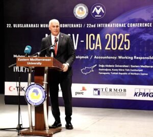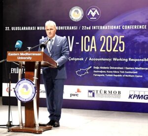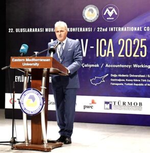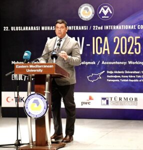 Türkiye Cumhuriyeti Kamu Gözetimi, Muhasebe ve Denetim Standartları Kurumu Başkanı Dr. Hasan Özçelik, muhasebe mesleğinin yalnızca sayısal bir faaliyet olmadığını, dijitalleşme, yapay zekâ ve sürdürülebilirlik süreçleriyle stratejik bir rol üstlendiğini vurguladı. Dr. Özçelik, yeni nesil muhasebe profesyonellerinin hem hesap yapan hem de strateji geliştiren bireyler olarak yetiştirildiğine dikkat çekti ve uluslararası bilgi paylaşımının mesleğin gelişimine katkı sağladığını belirterek Doğu Akdeniz Üniversitesi’ne organizasyon ev sahipliği için teşekkür etti.