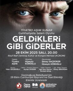 Hüseyin Köroğlu’nun sanat yönetmeni olduğu Tiyatro AŞHK tarafından Türkiye Cumhuriyeti’nin 102. Kuruluş yıldönümü nedeniyle ülkemizde “ Geldikleri Gibi Giderler” tiyatro oyunu sahnelenecek.