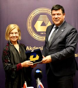 Törende konuşan KAYAD Başkanı Meral Akıncı, “DAÜ’ye geldiğim zaman eski günlerimi hatırlıyorum” diyerek, üniversiteyle olan bağlarının kendisi için özel bir anlam taşıdığını ifade etti. Kariyer yolculuğundan da bahseden Akıncı, özellikle KAYAD’a sağladıkları stajyer desteği için DAÜ’ye teşekkür etti.