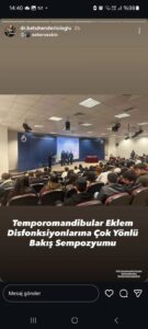 Temporomandibular eklem (çene eklemi) disfonksiyonuna çok yönlü bakış sempozyumu Uluslararası Kıbrıs Üniversitesi Fizyoterapi ve Rehabilitasyon Bölümü ev sahipliğinde gerçekleştirildi. Eklem disfonksiyonu ile ilgili güncel değerlendirme ve tedavi yaklaşımlarının irdelendiği sempozyum fizyoterapistler ve diş hekimlerini bir araya getirerek konuya ortak bakış sağlanan bir perspektif oluşturuldu. Sempozyuma adadaki tüm üniversitelerden katılımcıların olduğu sempozyumun başkanlığını;