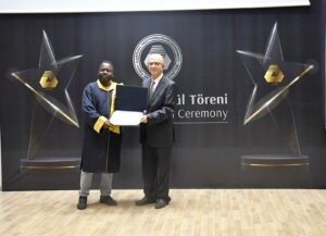 Tören, 2024 yılı boyunca üstün performans sergileyen akademisyenlere ödül ve belgelerinin Bakan Nazım Çavuşoğlu, Rektör Prof. Dr. Hasan Kılıç, VYK Başkanı Şemi Bora, VYK Üyeleri Özdinç Akdel ve Turan Büyükyılmaz, Rektör Yardımcıları Prof. Dr. Osman M. Karatepe, Prof. Dr. Sonuç Zorlu ve Prof. Dr. Ali Öztüren, Lisansüstü Eğitim, Öğretim ve Araştırma Enstitüsü Müdür Vekili Prof. Dr. Derviş Subaşı ve Yardımcısı Prof. Dr. Eda Becer tarafından takdim edilmesi ve toplu fotoğraf çekiminin ardından sona erdi.