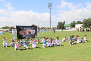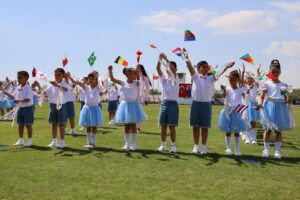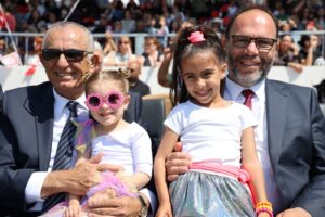 23 Nisan Ulusal Egemenlik ve Çocuk Bayramı’nın 106. yıldönümü kutlamalarının ikinci bölümü İskele Cumhuriyet Stadyumu’nda yapıldı. Buradaki tören, Ulu Önder Mustafa Kemal Atatürk ve şehitlerin anısına bir dakikalık saygı duruşunda bulunulması ve İstiklal Marşı eşliğinde bayrakların göndere çekilmesiyle devam etti.